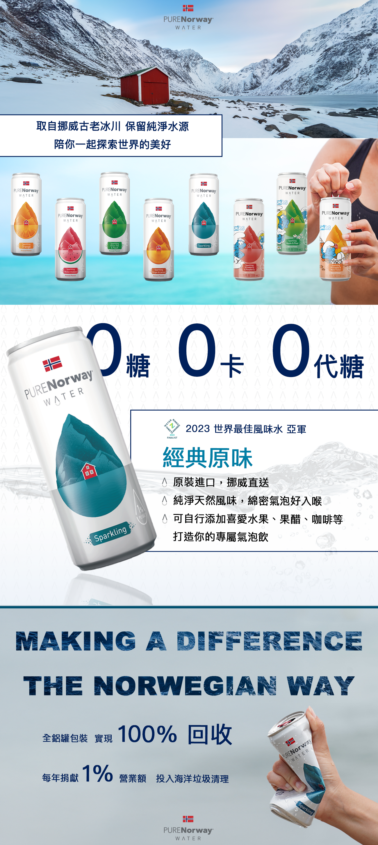 PURE Norway WATER 為原裝進口挪威氣泡水,水源來自挪威古老冰川國家公園,純淨天然,無污染。我們重視每一口水的安全,特別通過台灣 SGS 專業檢驗合格,檢測項目包含:
